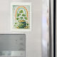 Magnet with a seasonal St. Patrick's Day image. Faded grunge style paper. A green pot of gold with coins
