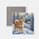 Aimant Vintage Samoyed in Alpine Christmas Landscape