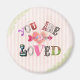 Vous êtes Loved Magnet design d'inspiration Vintage avec des rayures roses douces, d'inspiration antique fausse dentelle verte. Vous êtes Loved typographie avec différents motifs, y compris poster de animal, motifs rétro, bois et plus. Citer la boutique de la vie.