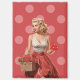 Bring classic romance to life with this charming vintage pin-up Valentine illustration set against a bold red polka-dot background. Inspired by mid-century glamour, this artwork features a graceful retro woman holding a heart-shaped Valentine and a basket of roses, blending timeless femininity with playful charm.