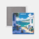 Voici une illustration élégante de la Grèce bleue et blanche sur un aimant qui présente la belle architecture de l'île grecque. Fait un grand souvenir et une idée cadeau pour chaque touriste et visiteur.