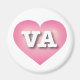 Cet aimant présente un coeur rose et cool avec un centre blanchi contenant les lettres coques supérieures VA, en gras, l'abréviation officielle de Virginie, l'état de l'Ancien Dominion.