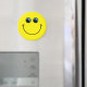 Cet aimant présente un visage émoji jaune souriant avec des yeux bleus.