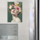 Une oeuvre numérique captivante d'une femme aux fleurs et à la verdure luxuriante qui orne son visage, obscurcissant ses yeux et créant un sentiment de mystère et de connexion avec la nature. Ses traits doux et stylisés contrastent avec les fleurs et le feuillage vibrants, tandis que l'arrière - plan verte riche met en valeur la beauté de sa couronne florale. La composition allie surréalisme et élégance, incarnant une harmonie entre la forme humaine et la nature.
