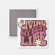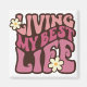 Des marguerites rétro décorent le texte "Living My Best Life".