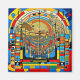 L'I.A. a créé une interprétation surréaliste d'un paysage abstrait surréaliste futuriste, avec des structures imposantes avec soucoupes volantes et des avions en vol naviguant entre eux.