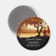 Un aimant romantique Save the Date avec un arbre d'automne coloré et une lanterne festive donnant sur un lac.