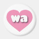 Cet aimant est composé d'un coeur rose contenant les lettres coques audacieuses, blanches, arrondies et inférieures wa, une abréviation ludique pour Washington, l'état à feuillage persistant.