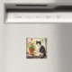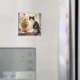 An illustration of a black and white cat sitting on a flower filled window sill illustration magnet for those that love their tuxedo cats.