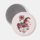 Magnet with a cute retro style carousel horse. Drawn in Pretty pink colors with fancy flowers.