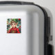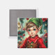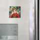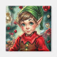 A sweet Christmas magnet with a cute elf cartoon and a festive background.