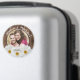 Mariage rustique, audacieux, fleur marguerite gerbera blanche et mariage photo à grains de bois enregistrer l'aimant de date. Des marguerites jaunes jaunes gras associées à votre photo fiançailles et un arrière - plan de bois brun foncé. Un amusant magnet de mariage photo rustique blanc marguerite personnalisée.