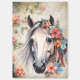 Horse head with flowing mane. Beautiful white horse among flowers.