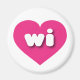 Cet aimant est doté d'un coeur rose chaud, plein de formes et de vitalité, qui contient les lettres coques inférieures wi, arrondies et blanches, une version ludique de l'abréviation du Wisconsin, l'état blaireau.
