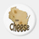 Une carte graphique du Wisconsin forme le fromage de l'artiste-designer Charmaine Paulson sur un aimant. L'aimant a le texte "Dites fromage". ©2012charmainepaulson. Veuillez visiter mon magasin pour plus de produits Wisconsin!