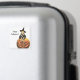 Une petite sorcière se trouve au sommet d'un citrouille sur ce graphique vintage de style Halloween.
