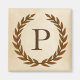 Une délicate couronne de laurier est posée sur un arrière - plan de papier parchemin dans le style romain classique. Ce design est personnalisé avec le monogramme "P" dans une tonalité de sienne riche.