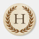 Une délicate couronne de laurier est posée sur un arrière - plan de papier parchemin dans le style romain classique. Ce design est personnalisé avec le monogramme "H" dans une tonalité de sienne riche.