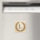Une délicate couronne de laurier est posée sur un arrière - plan de papier parchemin dans le style romain classique. Ce design est personnalisé avec le monogramme "L" dans une tonalité de sienne riche.