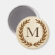 Une délicate couronne de laurier est posée sur un arrière - plan de papier parchemin dans le style romain classique. Ce design est personnalisé avec le monogramme "M" dans une tonalité de sienne riche.