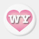 Cet aimant présente un coeur rose cool avec un centre blanc contenant les lettres blanches en haut coque en gras WY, l'abréviation officielle du Wyoming, l'état d'égalité.