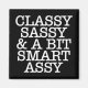 Girly-Girl-Graphics™ - Aimée, Classe & Un Peu Connue Assy Magnet - Ce texte simple, mais élégamment beau de police de machine à écrire blanche, cette typographie de citation drôle sur un design de fond noir élégamment moderne fait un cadeau unique et hilarant d'anniversaire, de remise de diplôme, de mariage, de Noël ou de n'importe quel jour pour les amis et la famille que vous aimez. Merci beaucoup pour votre achat. Copyright (c) 2025 girly-girl-graphics™