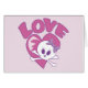 Crâne mignon et os croisés sur un coeur rose avec texte AMOUR. Voici un crâne girly adorable pour les femmes et les enfants.