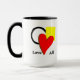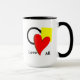Aimez toutes les formes et les couleurs. Coeur rouge, carré jaune, cercle noir et blanc. Personnalisez cette tasse pour un cadeau plus personnel.