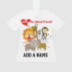 Un lion, une girafe, un singe, un zèbre, et un éléphant avec un coeur et un texte rouges qui lit l'amour nos amis animaux sur le T-shirts, les combinaisons, les bavoirs, les couvertures, les coussins, les horloges murales, les cartes, les porte - clés, les mousepads, les tasses, les sacs, les autocollants, et plus !
