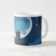 Une tasse céleste rêveuse avec une lune brillante et des étoiles entrelacées avec la silhouette d'un couple aimant. Parfait pour exprimer un amour infini.