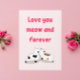 Envoyez des souhaits tout à fait doux avec cette adorable carte de voeux ! Avec un design de chat mignon sur un arrière - plan rose avec le message d’amour "Love You Meow and Forever", cette carte est idéale pour la Saint-Valentin, les anniversaires, ou juste pour dire "Je t’aime!"................................................................................................................................................ 🐱 💖