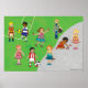Affiche de garçons et de filles jouant à des jeux dans une aire de jeux. Amusement extérieur traditionnel. Poster, imprimer ou toile parfaite pour la chambre ou la salle de jeux.
