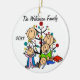 Assez autour de l'ornement en céramique de vacances de Noël de souvenir comporte un chiffre famille de bâton comprenant un papa, une maman, une fille, une fille d'enfant en bas âge, et un bébé devant un arbre de Noël décoré avec des secteurs que vous pouvez customiser avec votre nom de famille et l'année en cours ! Cet ornement mignon de souvenir de vacances fait un grand cadeau pour que la jeune famille commémore une année spéciale !