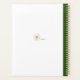 La couverture avant de ce planificateur comporte un bouquet de pâtisseries légères et délicates. Le texte, en haut, dit "ajoutez quelque chose de bon à votre journée aujourd'hui". Au fond, il y a une image d'une marguerite unique. Il y a un groupe vert, à l'avant et à l'arrière, à côté de la colonne vertébrale. Tous les planificateurs sont disponibles en 2 tailles et sont fournis en couverture dure ou douce. Les choix de couleur spirale de la colonne vertébrale sont noir, or et blanc.