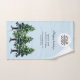 Ajoutez votre logo personnalisé Texte Pine Tree Promotion Serviette à main. Pins d'aquarelle avec neige sur un arrière - plan bleu vif. Insérez votre logo dans le modèle et customisez le texte, le nom de l'entreprise, l'adresse et les coordonnées. Promotion d'entreprise ou don pour vos clients et partenaires d'affaires.