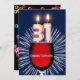 Ajoutez un nom pour customiser cette invitation unique. Une amusante invitation à la fête du 31e anniversaire avec des numéros heureux de bougies brûlant sur un verre de vin rouge. Voir toute la gamme d'invitations et de cartes dans mon magasin.