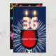 Ajoutez un nom pour customiser cette invitation unique. Une amusante invitation à la fête du 36e anniversaire avec des numéros heureux de bougies brûlant sur un verre de vin rouge. Voir toute la gamme d'invitations et de cartes dans mon magasin.