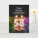Brûler des bougies à gâteau de 58ème anniversaire en forme de chiffres sur un cupcake au chocolat. Customisez avec le nom de la personne qui a donné naissance. Convient à un homme ou une femme. Voir toute la gamme de cartes pour les âges et les relations dans mon magasin. Toutes les oeuvres d'art copyright Norma Cornes