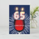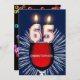 Ajoutez un nom pour customiser cette invitation unique. Une amusante invitation à la fête du 65e anniversaire avec des numéros heureux de bougies brûlant sur un verre de vin rouge. Voir toute la gamme d'invitations et de cartes dans mon magasin.