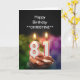 Brûler des bougies à gâteau de 81e anniversaire en forme de chiffres sur un cupcake au chocolat. Customisez avec le nom de la personne qui a donné naissance. Convient à un homme ou une femme. Voir toute la gamme de cartes pour les âges et les relations dans mon magasin. Toutes les oeuvres d'art copyright Norma Cornes