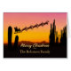 Une carte de Noël pour vous de customiser en ajoutant le nom de vous ou de votre famille. Une belle carte de Noël familiale. La carte montre Père Noël survolant le désert. Beaucoup de gros cactus sont vus en silhouette. Souhaitez un joyeux Noël du désert avec une belle carte couleur coucher de soleil.