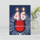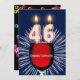 Ajoutez un nom pour customiser cette invitation unique. Une amusante invitation à la fête du 46e anniversaire avec des numéros heureux de bougies brûlant sur un verre de vin rouge. Voir toute la gamme d'invitations et de cartes dans mon magasin.