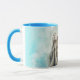 Belle fille bleue et rose priant tasse de café. Ajoutez vos prières, poèmes, citations ou messages favoris à cette tasse dans la zone de personnalisation.