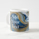 Ajouter votre texte Mug Jumbo Custom Text Mug Il s'agit d'une grande tasse bleue, or et blanche avec de l'art luxueux. L'art a été créé avec de l'intelligence artificielle. La tasse est une tasse jumbo avec un espace de chaque côté pour le texte. Il y a deux espaces sur la tasse qui peuvent afficher votre texte. Les espaces ont Ajouter votre texte sur eux. Cette tasse est une tasse spécialisée. La tasse est une jolie tasse de luxe avec une jolie parties scintillant en faux or et des tourbillons bleus et blancs dans un design luxueux. Lorsque vous cliquez sur le bouton Personnaliser, vous pouvez ajouter du texte à la tasse. C'est une tasse en céramique qui contient 20 onces. La tasse peut être imprimée avec votre texte dessus. La tasse est équipée d'un four micro-ondes et d'un lave-vaisselle. Ces tasses jumbo répondent aux exigences de la FDA en matière de salubrité des aliments et des boissons. Ces tasses à café personnalisées feront des cadeaux uniques pour vos amis, votre famille et vos collègues.