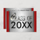 "Classe" fête de remise des diplômes de 20XX, invitations, ou annonces élégantes. "Classe argentée chique de" dans le graphique métallique de nombres et de lettres de regard et un arrière - plan argenté balayé avec les frontières rouges. Ajoutez facilement l'année du diplômé de l'obtention du diplôme et de votre texte fait sur commande au dos de la carte qui est regard argenté balayé en métal et frontières rouges pour assortir l'avant. Changez facilement le rouge sur l'avant et de nouveau à n'importe quelle couleur. Cliquez sur juste dessus la "personnaliser il" et alors "éditez" et alors "arrière - plan" pour le changer. Grand pour le junior et l'école de cycle du secondaire aussi bien que pour l'université reçoit un diplôme. Rappelez-vous l'occasion spéciale avec des ces cool, invitations faites sur commande d'obtention du diplôme. Riches regardant et élégants, pourtant abordables !