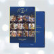 Créez un journal photo spécial de toute l'année. Choisissez vos photos préférées ou vos souvenirs les plus chers pour cette carte de vœux photo de 12 mois. La carte de vœux bleue peut être un objet de Noël et du Nouvel An à conserver. Couleurs bleu et or. Personnalisez le texte et ajoutez vos photos. C'est également une excellente idée de cadeau. Faites plaisir à vos amis et à votre famille avec un résumé de l'année. Utilisez le modèle pour créer votre propre carte de vœux photo de Noël "Notre année bénie".