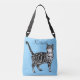 Cute Blue Girls Room Tabby Cat Handbag, avec un nom entièrement personnalisable. Ce mignon sac de chat est sûr de mettre un sourire sur le visage de n'importe qui. Conçu à partir d'un de mes dessins originaux de stylo à encre.