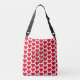 Un sac fourre-tout de corps croisé avec des coeurs rouges sur un arrière - plan blanc. Donnez-en un à votre mère ou à votre belle-mère comme cadeau de Saint-Valentin ou cadeau d'anniversaire. Customisez et personnalisez-le comme vous voulez. Vous pouvez ajouter des noms, des photos et du texte pour en faire le cadeau parfait.