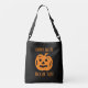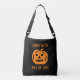 Enfants Halloween tricoter ou traiter le sac fourre-tout de corps croisé. Design de sculpture citrouille noir et orange.