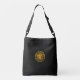 Sac carrossable noir avec cercles concentriques noirs, dorés et blancs au-dessus d'un rectangle noir et or avec "KANSAS CITY, MISSOURI CENTRE DE L'UNIVERS"., et avec logo Y-NOT-ME sur le dos. Cette conception est un cri de la ville de Kansas, Missouri, une ville de champions.